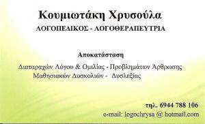 ΛΟΓΟΘΕΡΑΠΕΥΤΡΙΑ ΚΗΦΙΣΙΑ - ΛΟΓΟΘΕΡΑΠΕΥΤΕΣ ΚΗΦΙΣΙΑ - ΛΟΓΟΠΕΔΙΚΟΣ ΚΗΦΙΣΙΑ - ΚΟΥΜΙΩΤΑΚΗ ΧΡΥΣΟΥΛΑ