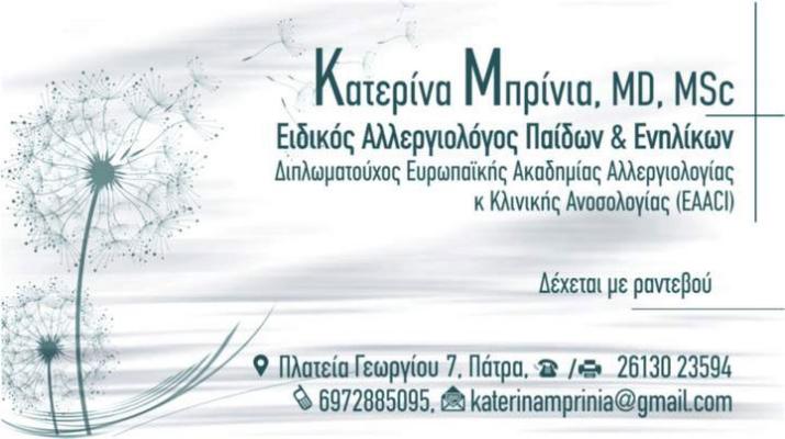 ΜΠΡΙΝΙΑ ΚΑΤΕΡΙΝΑ - ΑΛΛΕΡΓΙΟΛΟΓΟΣ ΠΑΤΡΑ - ΑΛΛΕΡΓΙΟΛΟΓΟΙ ΠΑΤΡΑ