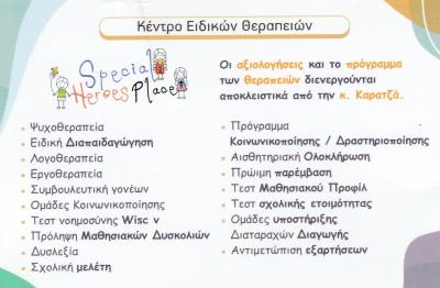 Το special heroes είναι ένα οργανωμένο θεραπευτικό πλαίσιο για παιδιά , εφήβους και οικογένειες, όπου παρέχονται ολοκληρωμένες διαγνωστικές και θεραπευτικές υπηρεσίες από εξειδικευμένους επιστήμονες διαφόρων ειδικοτήτων.